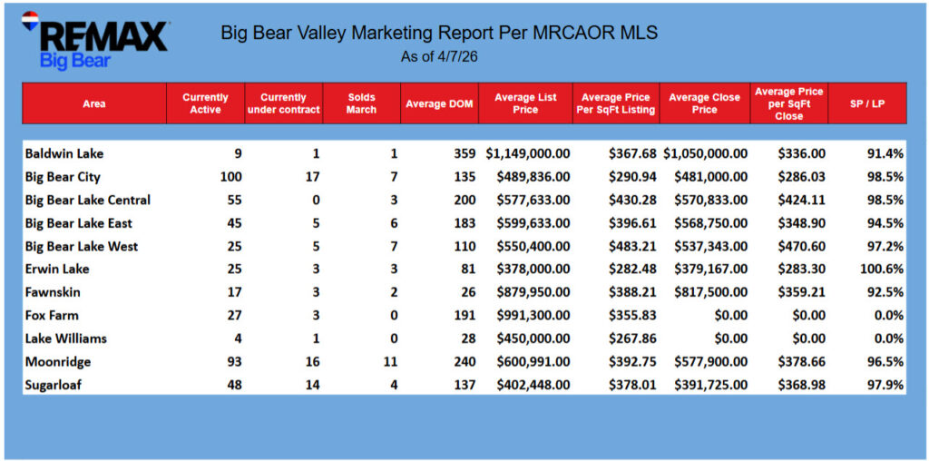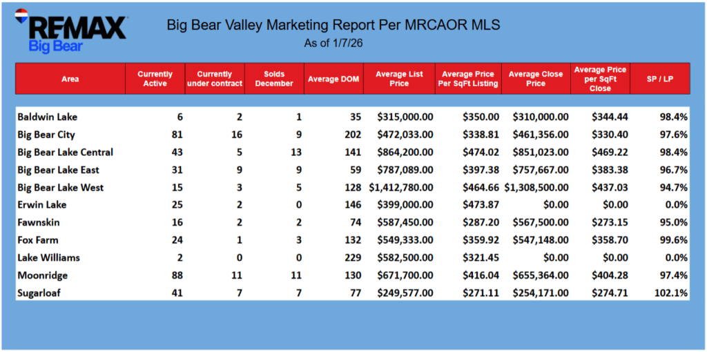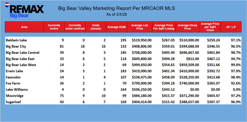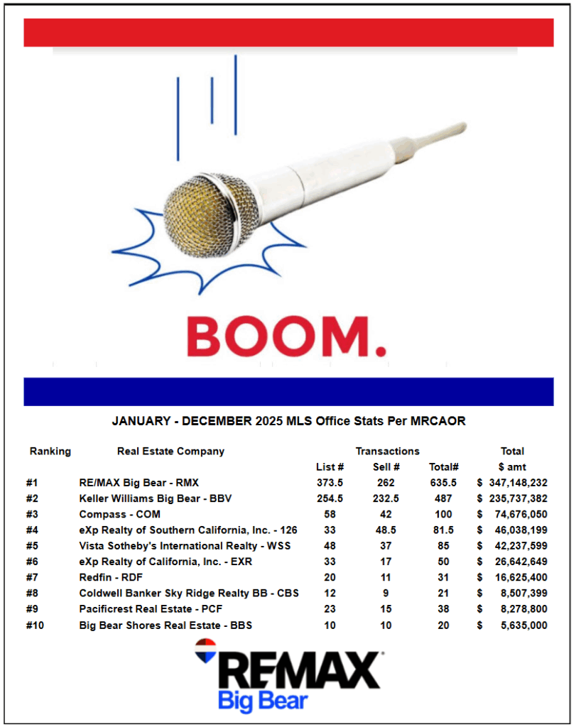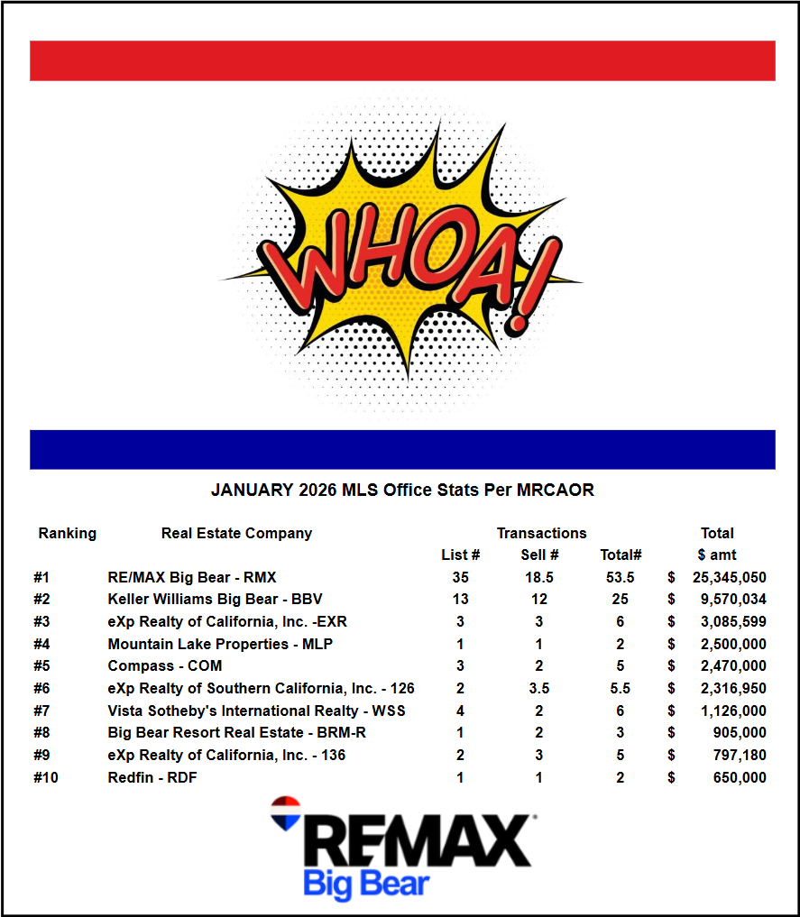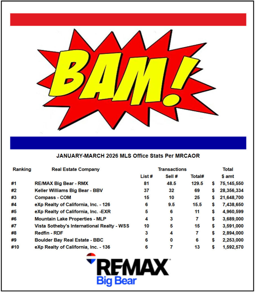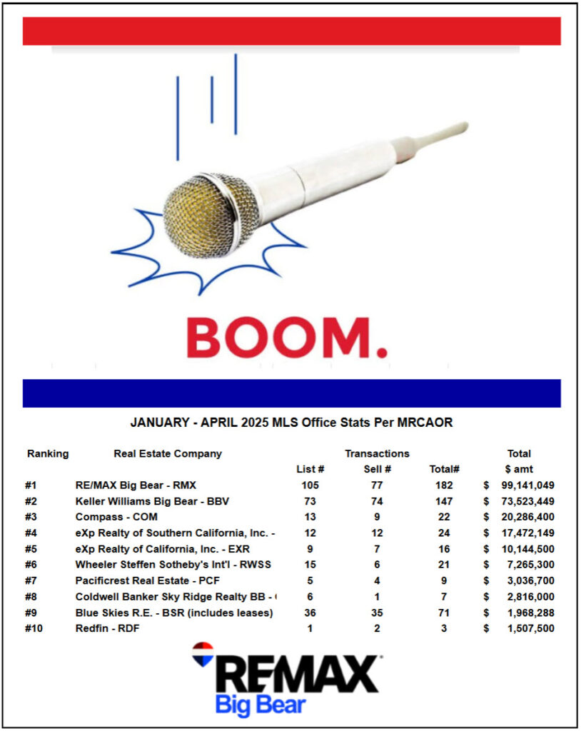 · RE/MAX Big Bear utilizes the local MLS (multiple listing service) to ensure you find the right home at the right price.